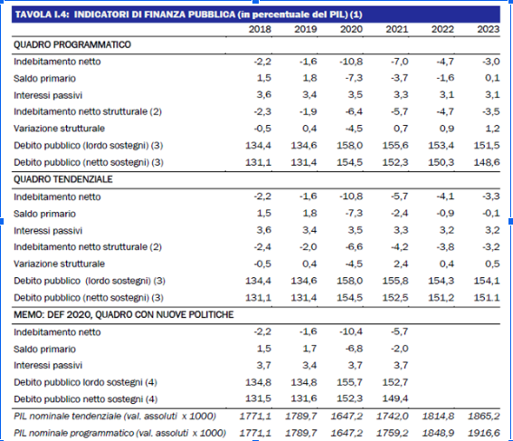 Fonte: Ministero dell’Economia e delle Finanze, NADEF 2020