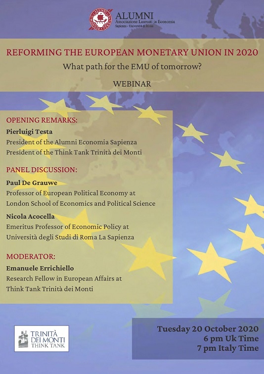 WEBINAR: “Reforming the European Monetary Union in 2020” – Web, 20 Ottobre 2020