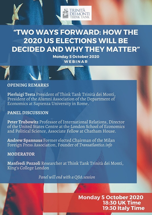 WEBINAR: “Two Ways Forward: How the 2020 US Elections Will Be Decided and Why They Matter” – Web, 5 Ottobre 2020